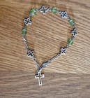 T17) Vintage 925 Silber Rosenkranz Armband Bracelet Grüne Perlen Kreuz